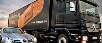 - Large-capacity . This is a vehicle weighing more than 12 tons, capable of carrying 8 tons of cargo. The cars are used to form road trains, since they rarely represent a single structure with a body. These are tractors and platforms to which trailers and containers are attached.
