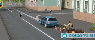 A picture with a detailed description and explanation can be viewed on Internet resources dedicated to traffic rules and preparation for the theoretical part of the exam.