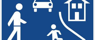 1.35. “Crossroads area.” Designation of the approach to an intersection, the section of which is marked with marking 1.26 and which is prohibited from entering if a traffic jam has formed ahead along the route, which will force the driver to stop, creating an obstacle to the movement of vehicles in the transverse direction, with the exception of turning right or left in the cases established by these Rules. Sign 1.35 is installed at the border of the intersection. If at complex intersections it is impossible to install a road sign at the intersection boundary, it is installed at a distance of no more than 30 meters from the intersection boundary.