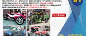 - — разрешает управлять ТС массой не более 550 кг, максимальной скоростью более 50 километров в час и двигателем объемом более 50 кубических сантиметров (трициклы, квадрициклы).
