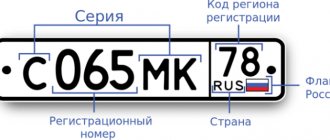 Обычно, как показано выше, три буквы составляют серию, а три цифры — номер. Интересно, что серию номера составляют только из 12 видов букв — это буквы А, В, Е, К, М, Н, О, Р, С, Т, У и Х, так как только они имеют аналогичные буквы в латинице.