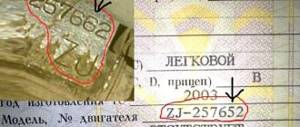Также номер двигателя указывается в ПТС и свидетельстве ТС. Комбинация букв и цифр в документах и на самом силовом агрегате должна полностью совпадать.