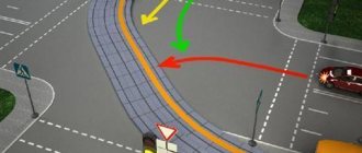 Особенное внимание нужно обращать на неё при развороте, так как можно просто не вписаться в него, если дорога узкая или автомобиль крупногабаритный. В таком случае разметка поможет определить границы поворота.